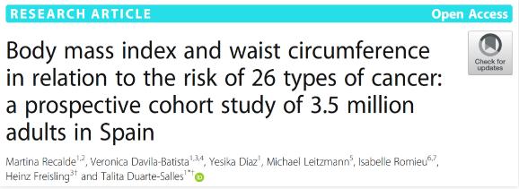2021年1月,西班牙巴塞罗那大学的研究人员在《BMC医学》 杂志上,刊登了研究了350万人的研究后发现:“腰粗肚子大”的人患癌风险也高!