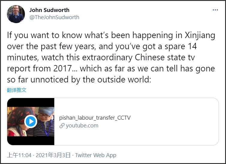 BBC驻京记者沙磊在推特发帖,将中国鼓励年轻女性自立自强的帮扶举措,歪曲成“强迫劳动”和“强制同化”。