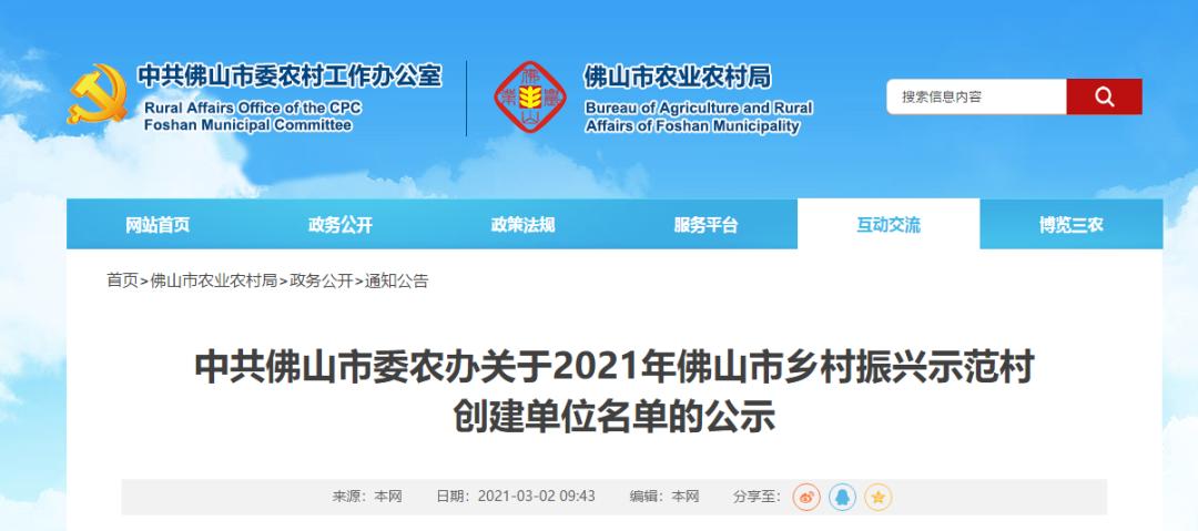 佛山第三批乡村振兴示范村名单公示