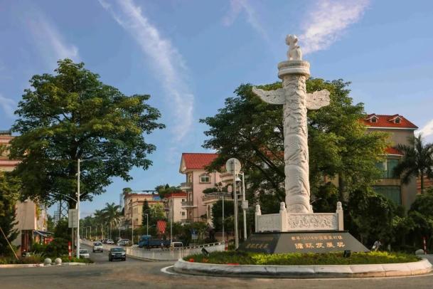 在环岛处,刻有“2014中国最美村镇·循环发展奖”的华表映入眼帘。陈志文/摄顺德区勒流街道稔海村