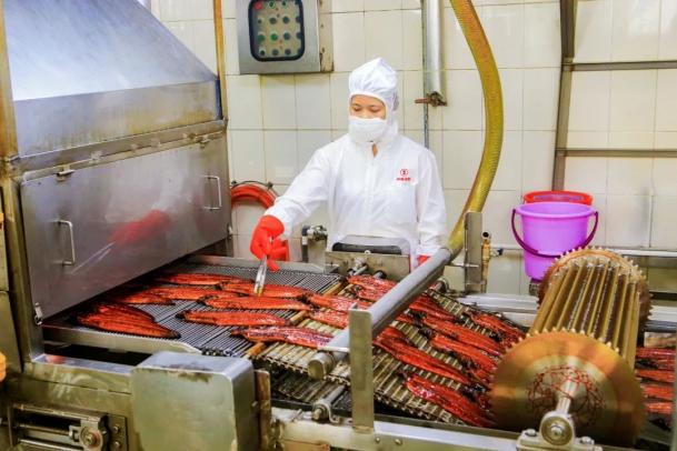 稔海村烤鳗厂的制作流水线。朱德文/摄