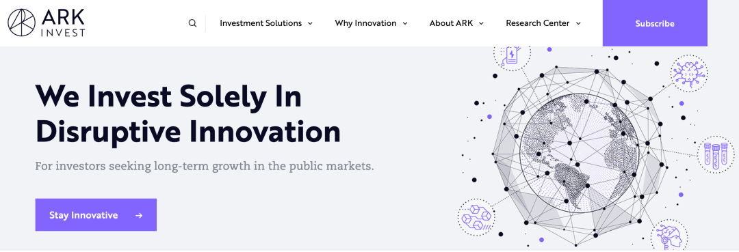 ARK只研究具有“颠覆性创新”的公司,而非成熟安逸的公司。(编者按,例如ARK第一重仓股特斯拉、第二重仓股做数字钱包的SQ等)