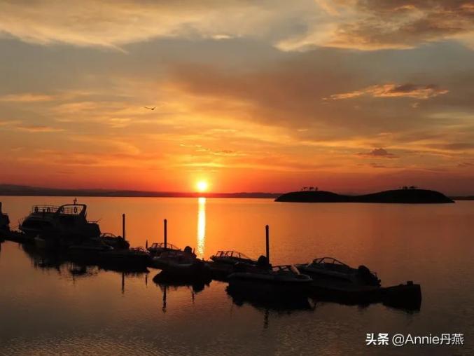 夕阳西下,散落的余光浮在乌海湖面,鳞波闪闪,一幅大漠孤烟直、长河落日圆的盛景在眼前浮现,黄昏的暮色唯美而柔软,如一条五色彩带般划过天际,白天可在乌海湖中游玩,入夜可在一号码头赏最美落日。