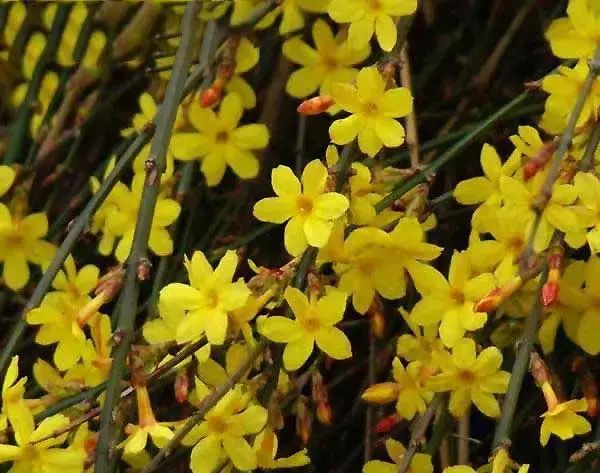 从花期上也容易区别:迎春花一般在2月中旬至3月下旬,连翘3月下旬至4月中旬。
