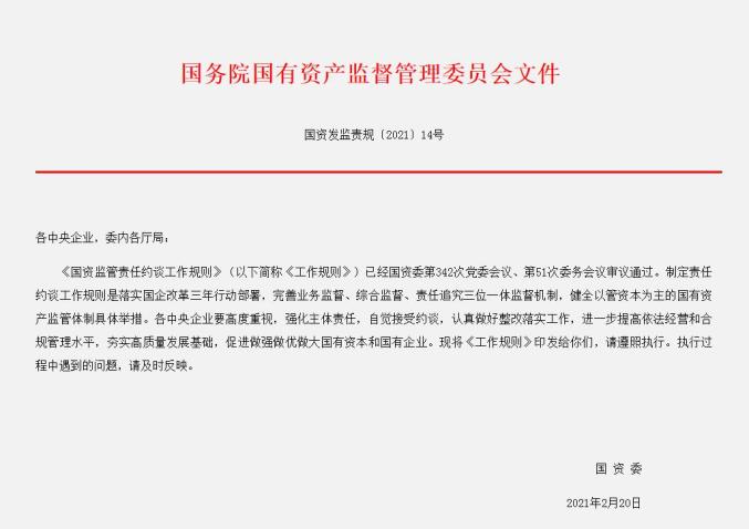 文件解读国务院国资委印发《国资监管责任约谈工作规则》