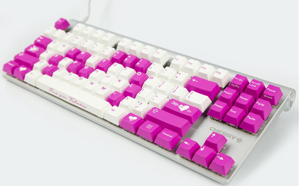像这套德国原装的CHERRY原装的情人节配色键帽,就是采用了二色成型工艺,售价人民币888元,这个仅仅是键帽的价格,并不包含键盘。如果你们觉得价格还可以,再来套贵的:
