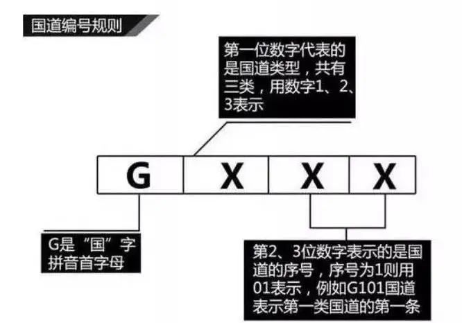 国道也是以字母G开头,但是为了和高速区分,字母后面跟的数字是3位,一般以红底白字显示。