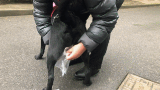 母狗的大小便都可以套上塑料袋解决,但像查德这样的公狗就只能大便拉在袋子里,小便定点排便。