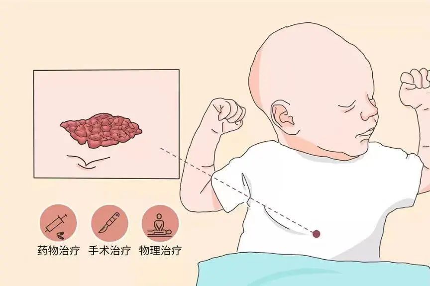 是成血管细胞增生而形成的常见于皮肤和软组织内的先天性良性肿瘤或血管畸形。分为毛细血管型血管瘤、海绵状血管瘤、蔓状血管瘤。此病极为常见,形态各异,婴幼儿常见草莓状血管瘤,形似草莓,多高出皮肤,可呈樱桃红色或青紫色。可发生于全身各处,以口腔颌面部居多,其次是躯干和四肢。可行激光、硬化剂注射治疗、药物治疗、激素治疗、放射治疗或手术切除。