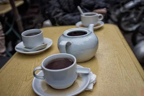 老爸茶店的茶通常都是红茶,舀一勺白糖到杯里,倒入红茶,食客可以根据各自的口味搅拌白糖。如果迫不及待一把搅开,甜味会瞬间迸发,喝完一杯再加红茶,又容易寡淡无味。因此,喝红茶还是极有讲究的。
