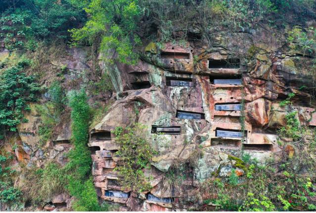 宜宾僰人悬棺(向宇 供图,图片来源:四川日报)这里是珙县洛表镇麻塘坝棺材铺景点,珙县僰人悬棺的核心部分之一。在中国,悬棺这种葬俗在福建、广西、江西、云南、贵州等地都有发现,但以四川珙县数量最多、分布最为集中、保存最完好。在珙县,它们又主要分布在麻塘坝。在长约5000米,宽约三五百米的平坝两侧,22座山崖连绵起伏,悬棺就分布在绝壁之上。