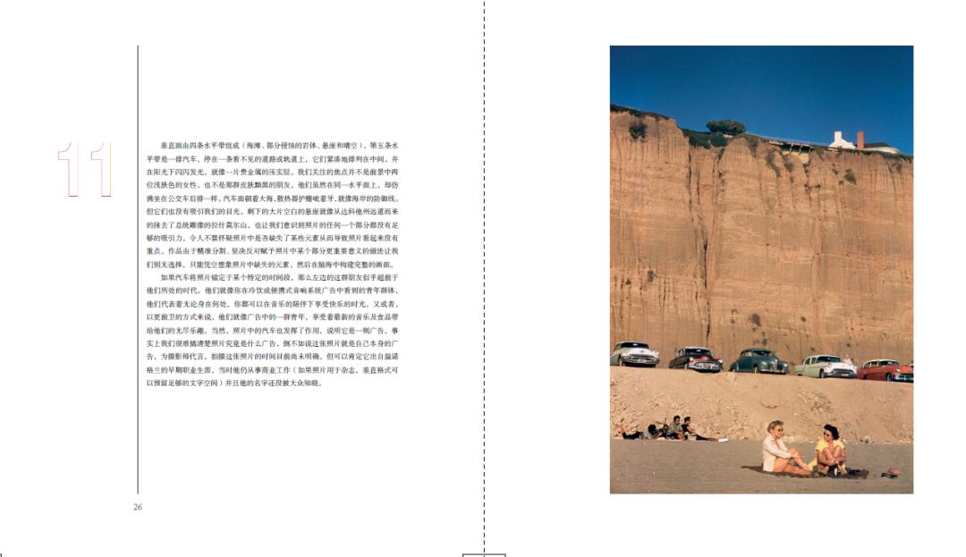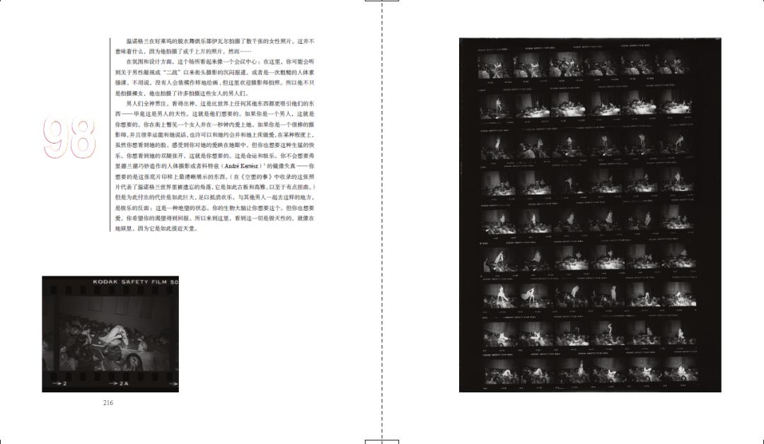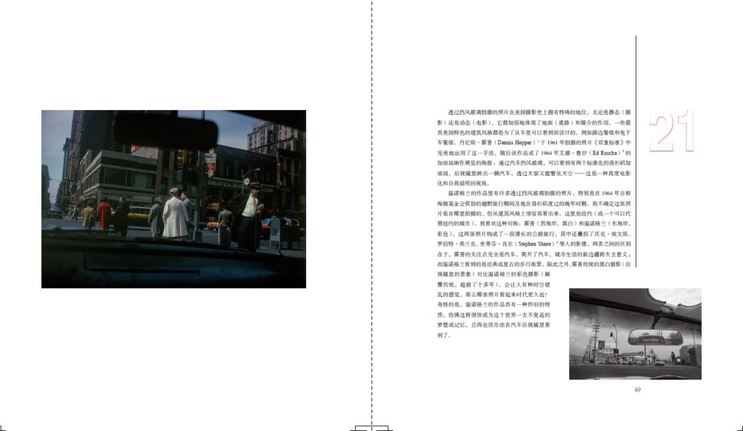 《温诺格兰的街头摄影哲学》,内页图本书的叙事大致按时间顺序展开,涵盖了温诺格兰大部分的拍摄主题和对象,整体上也忠实于他生活的地理事实:他出生于纽约,20世纪50年代在美国本土旅行,之后再次回到纽约;1964年他在古根海姆基金会资助下进行了一次公路旅行;1967年和1969年分别前往欧洲(在此概括为一次英国之行和一次丹麦之行),随后又回到纽约;1973年居住于奥斯汀,1978年居于洛杉矶,1984年去世,享年五十六岁。无论温诺格兰身在何处,他的旅行和拍摄从不曾中断。