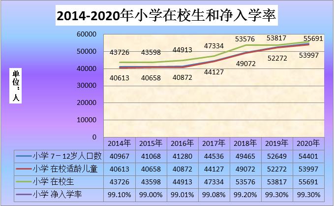 图2:2014-2020年小学在校生和净入学率