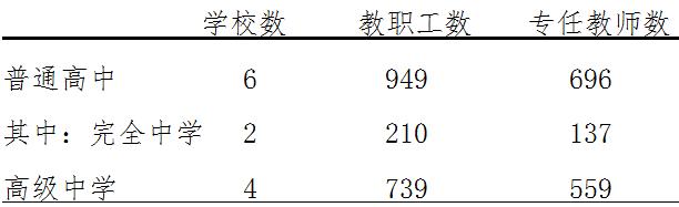 普通高中教职工949人,比上年增加154人,增长19.4%,专任教师696人,比上年增加106人,增长18%;专任教师学历合格率98.2%,较上年同比下降0.2个百分点。