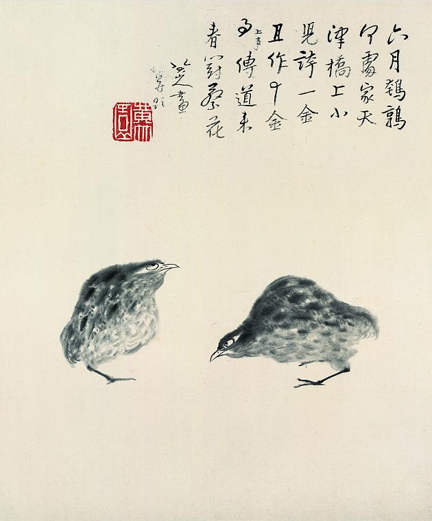 八大山人虽然生活在明末清初,但他的书画艺术达到了中国古典书画艺术的最高峰和最前端。说最高峰,是因为他综合融会了此前中国古典书画艺术的精华,在他的作品中我们能辨识出历代大家的痕迹和影响,他是站在前人的肩膀上的。说最前端,是因为他的作品即使在21 世纪的今天,依然丝毫不觉过时落伍,反而极具现代感。打个不很恰当的比方, 他的艺术大脑,一部分在明清以前,一部分在当下,还有一部分在未来。
