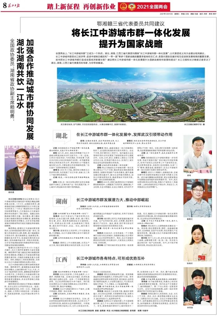 推动长江中游城市群一体化发展: