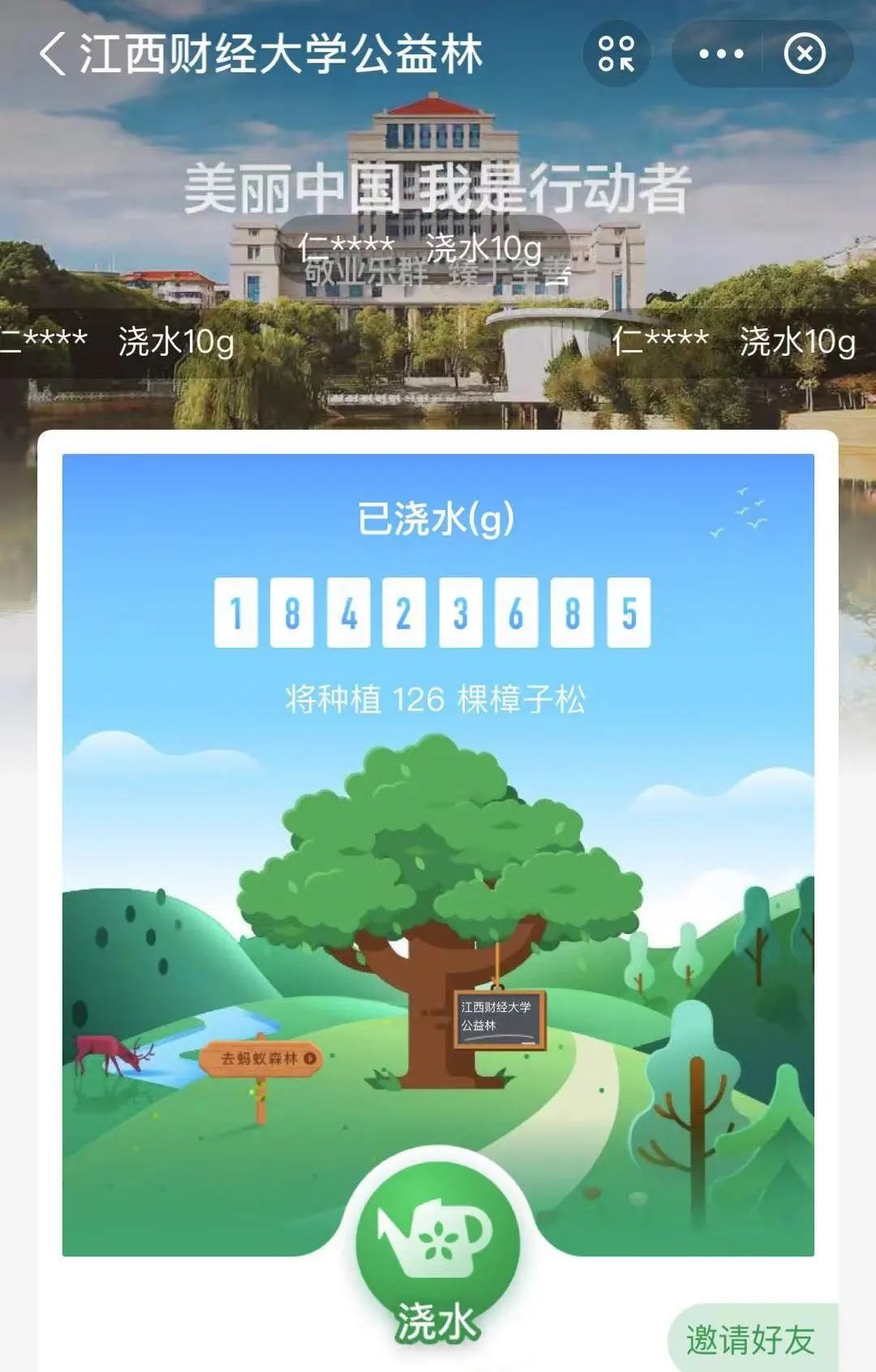江财人已为公益林累计浇水18423685克