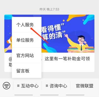 内蒙古“四位一体”就业服务云平台请微信搜索关注“就业内蒙古”公众号,点击“互动中心”,选择“个人服务”,进入“内蒙古