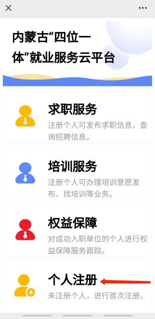 <四位一体>就业服务云平台”,进行注册,提出您的就业服务需要。四位一体>一、进入“就业内蒙古”微信公众号,点击左下角“互动中心”,选择“个人服务”,进入“内蒙古