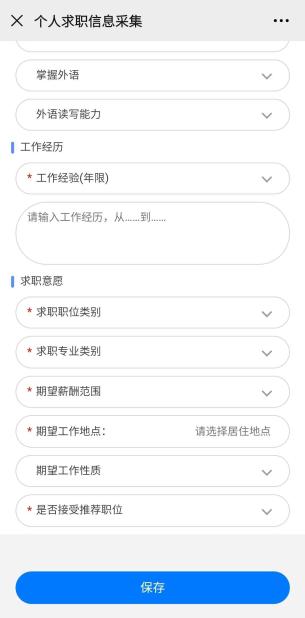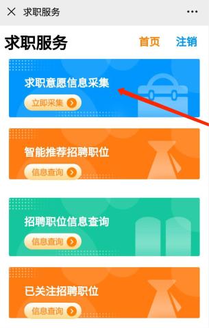 三、“求职服务”一栏中,点击“求职意愿信息采集”,完善相关信息,可设置个性化的求职意愿。注意:“*”为必填项。