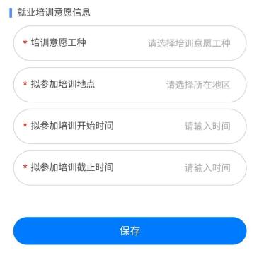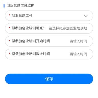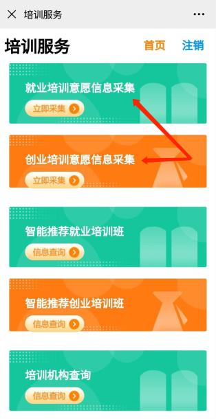 四、“培训服务”一栏中,分别点击“就业培训意愿信息采集”、“创业培训意愿信息采集”,完善相关信息,可设置个性化的培训意愿。