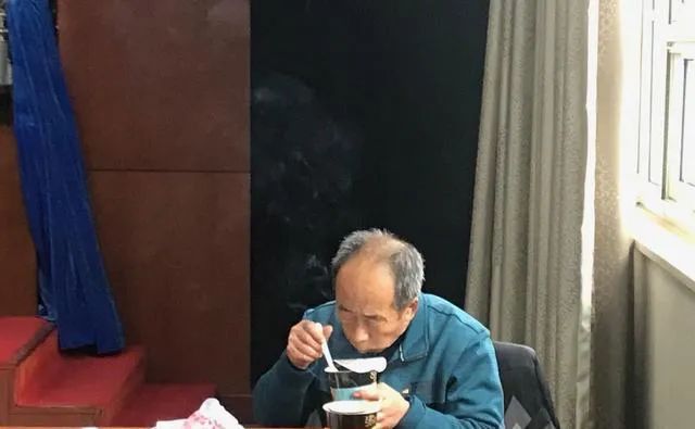 栗二有在某次见面会间隙吃泡面唯一一次有印象,是在一次家属委员会的会议上,栗二有忽然闯进办公室说:“我就是个老农民,不会说话,但谢谢大家了。”说完向众人深深鞠了一躬,便转身离开。