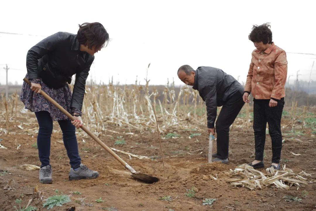 刘金鹏与栗二有、刘双风一起种下榛子树苗丨摄影 常克永栗二有把这些榛子树当作是希望,想着开花结果的时候,儿子或许就回来了。