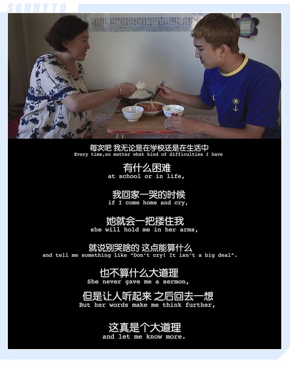“我觉得自己像雨花石,在泥土中长大,受尽风吹雨打。可我不怕,我要把生活中的苦难当做人生的财富,积极乐观地过好每一天。”