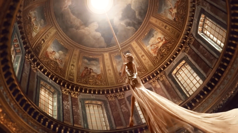当年整个凡尔赛宫光是擦玻璃这项开销就达到了180,000里弗尔;后来路易十五的长子出生,庆典上镜厅里光是蜡烛就燃了8000根,不过想必当年的路易王们也是甘之如饴吧而如此荣耀的镜厅作为迪奥的秀场,这不是第一次。早在2011年,查理兹·塞隆在「DIOR J’adore」迪奥香水广告中化身向光而生的女战士,一战成名。只是10年后最新一季的秀场理念更加锋芒毕露。