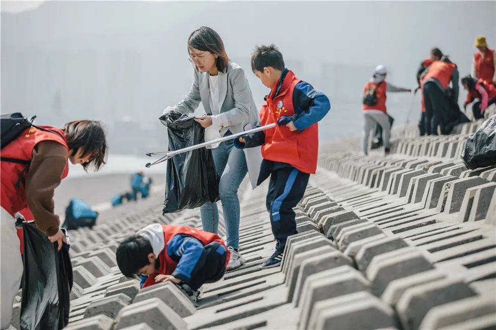 活动现场,志愿者们一手拿着垃圾袋,一手持着垃圾夹,仔仔细细地拾捡大坝上散落的垃圾并分类。大家纷纷表示不仅学到了知识,还保护了大海,很有意义。