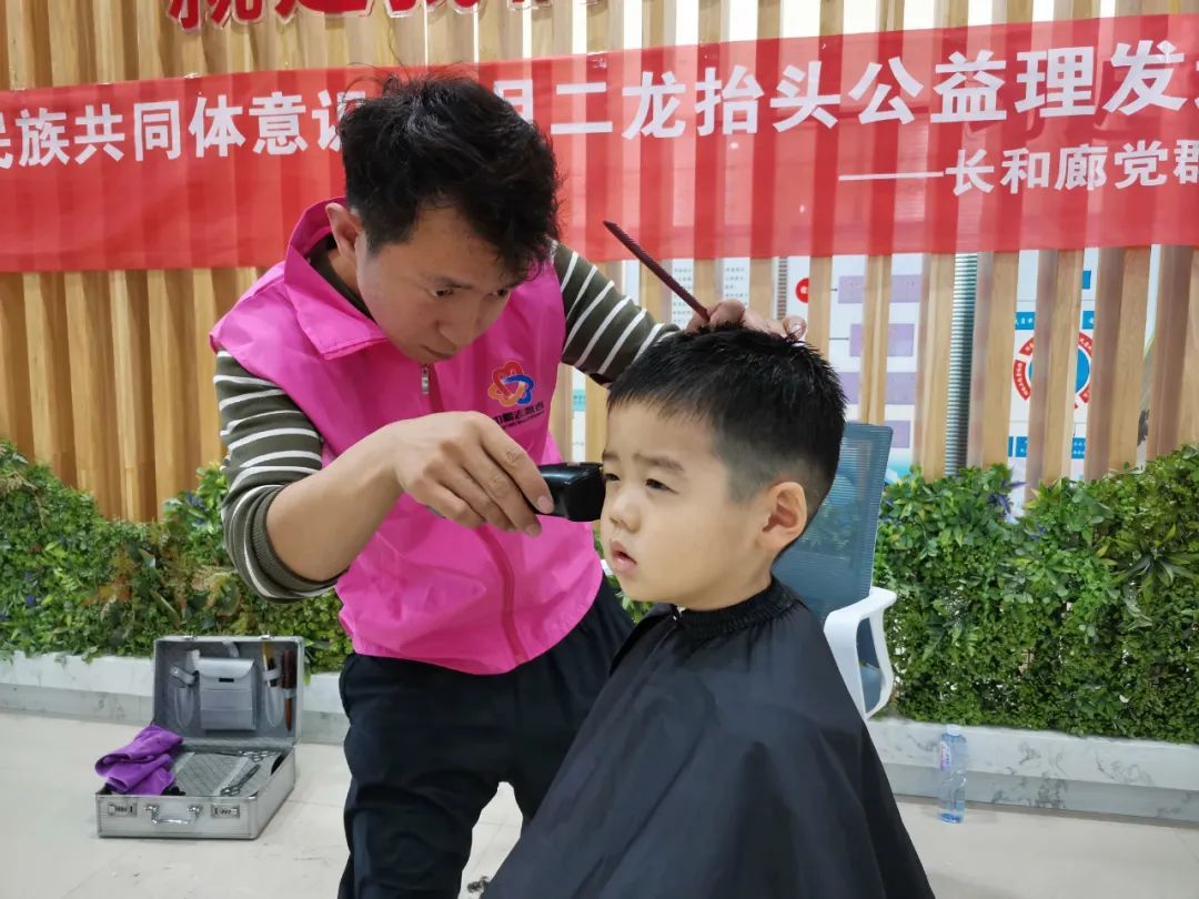 当日,玉泉区长和廊街道党群服务中心联合呼和浩特市青少年科普协会,组织辖区内具有理发专长的志愿者,为居民进行义务理发。据街道工作人员介绍,他们提前在居民活动群里发布通知信息,辖区居民都可以来享受此次义务理发。志愿者现场为居民设计修剪合适的发型,前来排队的有老人、青年、孩子,络绎不绝,大家聚在一起有说有笑……孩子家长告诉记者,今天带孩子来理发,一方面是图个吉利、讨个口彩,另一方面还能从小培养孩子对于民俗知识的兴趣,这样的活动很有意义。