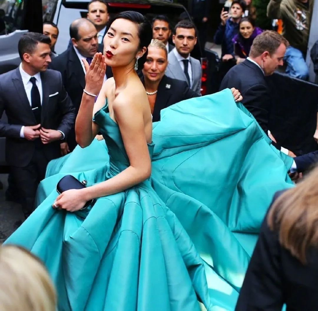 造型的灵感,来自于她2014年出席Met Gala慈善晚宴时,所穿着的经典绿裙。