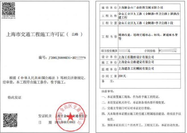 在该项目正式提交申请前,金山区交通委跨前服务,告知企业注意事项、申请材料等。企业通过上海市一网通办网站上传材料提交申请后,受理人员第一时间开展审核,审批完成后电话告知企业自行下载打印许可证,无需再到窗口领取纸质证书。至此,金山区首张交通建设工程施工许可证电子证照顺利核发,真正实现交通建设工程施工许可自受理到审批无纸化全程网上办理。施工许可电子证书不但与纸质证书具有同等法律效力,并加载了二维码,可显示相关建设项目信息,不仅解决了纸质版证书携带保存不便、容易遗失等问题,还起到查询和防伪作用,行政工作人员彻底告别了审验许可证时一一查询纸质档案的历史,一码查询,切实提升了行政服务效能。