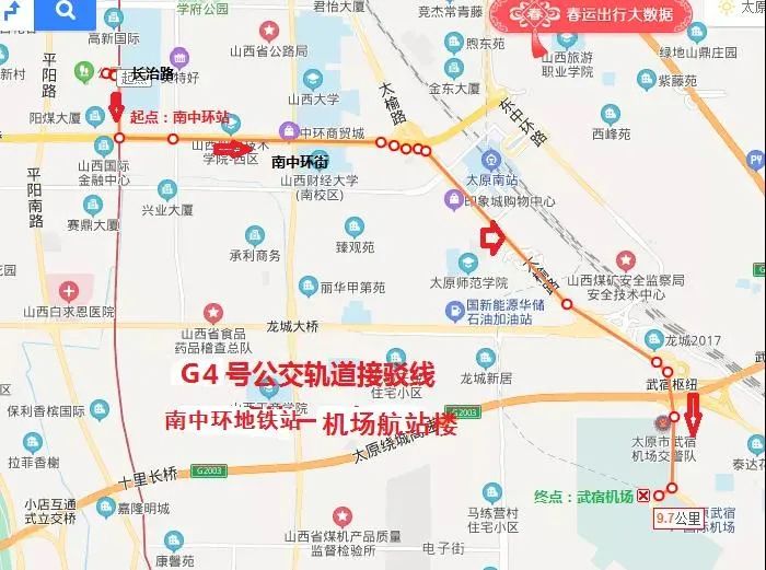 7条公交专线以G1至G7命名,其中,G1专线起点为中北大学、终点至大北门地铁站,G2专线起点为中北高新技术产业开发区长城计算机公交站、终点至尖草坪地铁站,G3专线起点为太原南站、终点至龙兴街地铁站,G4专线起点为南中环地铁站、终点至武宿机场,G5专线起点为富士康园区、终点至康宁街地铁站,G6专线起点为富士康园区、终点至通达街地铁站,G7专线起点为南中环地铁站、终点至唐槐路正阳街。(记者 张海瑞、赵继钊)