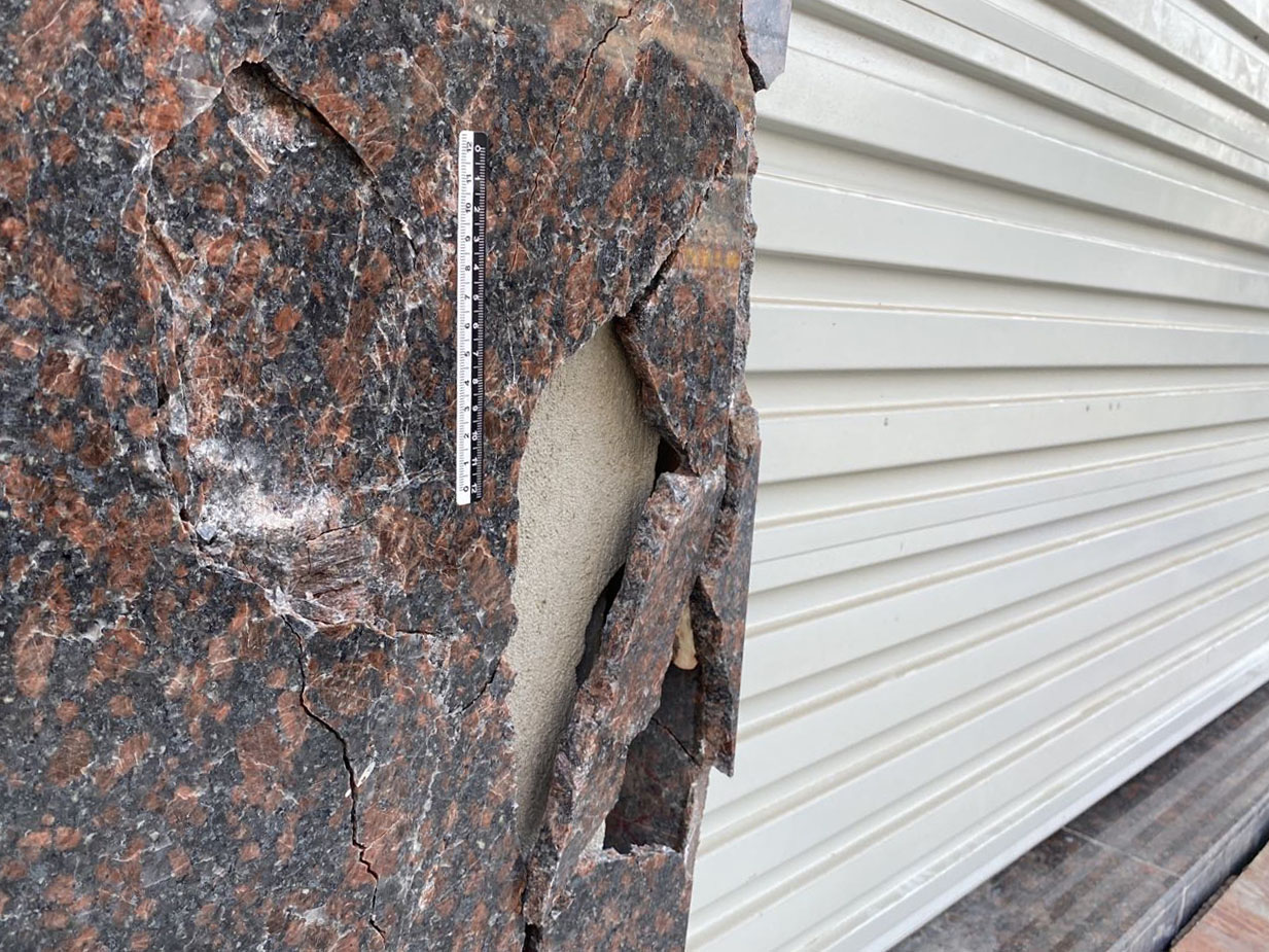 吴鹏说,撞到第一次后,车子又往后倒退,然后再次往前冲撞。第三次同样是先倒退,后加速冲撞,这次高锋的车子还冲上了每层高约15厘米的三层台阶,将居民楼一楼的瓷砖撞碎。