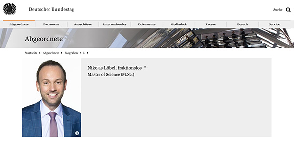 现年34岁的尼古拉·吕贝尔(Nikolas Löbel)是土生土长的曼海姆人。2017年当选曼海姆选区的国会议员,当选时才刚过30岁,可以说是一颗冉冉升起的政治新星。在当选议员之前,吕贝尔在曼海姆经营着一家以自己名字命名的项目管理公司。正是他企业家的身份,今年给他带来了巨大的麻烦。