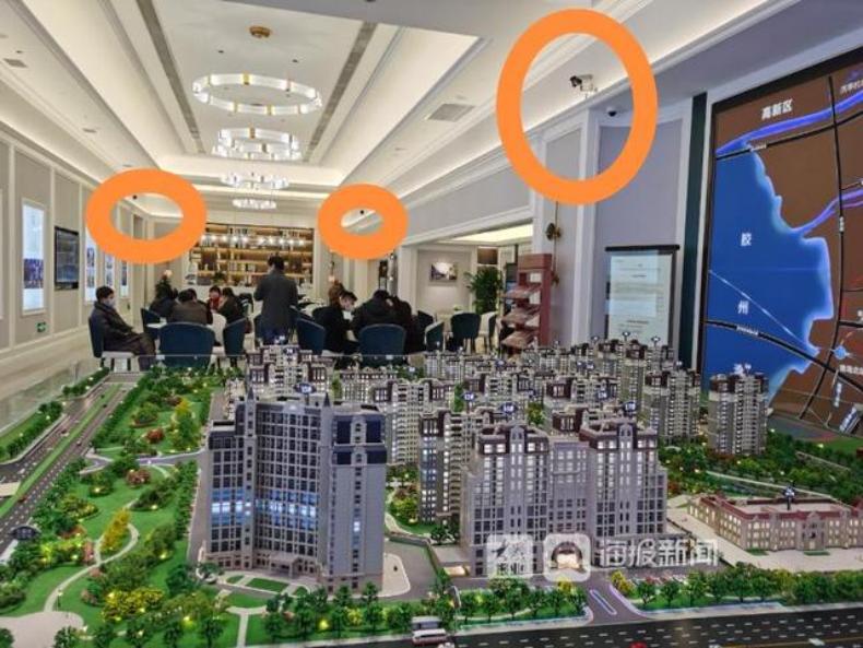 青岛某媒体披露的某售楼处「人脸识别」标配,摄像头用橙色标记出。