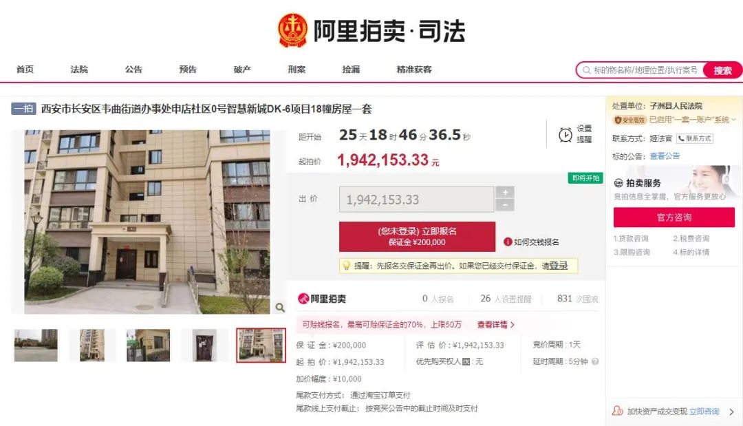 子洲法院拍卖西安长安区智慧新城130㎡房产,194万元起拍!