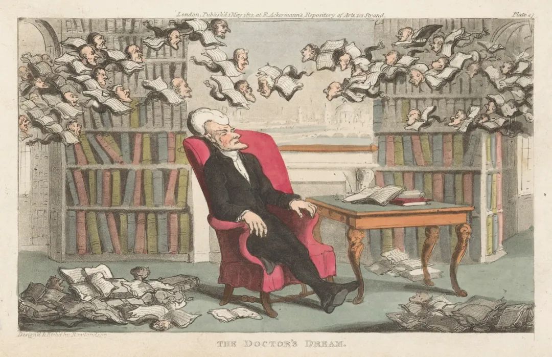 在威廉·康贝(William Combe)所著的诗意三部曲——《医生的三次旅行中》,Syntax医生在坐垫“厚实饱满的摩洛哥式”扶手椅上梦到的牧师。这是托马斯·罗兰森(Thomas Rowlandson)为该书所作的插画。© rijksmuseum.nl很难企及19世纪家具那样的高度。这种困难不是因为缺乏物质材料,因为材料随处可见。而是在精神领域难以望其项背。
