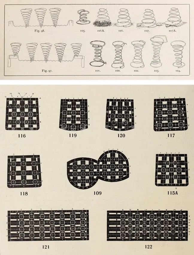 约翰·W·斯蒂芬森(John W. Stephenson)所著《家具内衬》(1914年)里,“弹起来”这章中的图片。© archive.org弹簧的弹性为维多利亚时代的人们创造了新的幻想题材。椅子不再是骸骨一般的架子——现在它们的骨头被埋在拱状的底座和垫子中,层层叠叠的织物覆盖在活力满满的弹簧上。