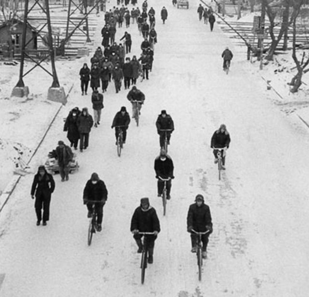 五六十年代,有些东北工人就骑上了自行车,往返于工厂和工人村。那时候,中国很多地区的人连自行车长什么样子都没见过。