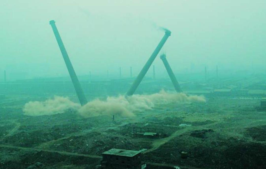 随着沈阳冶炼厂的烟囱三兄弟被定向炸毁,里面的陈年灰垢被震出来。