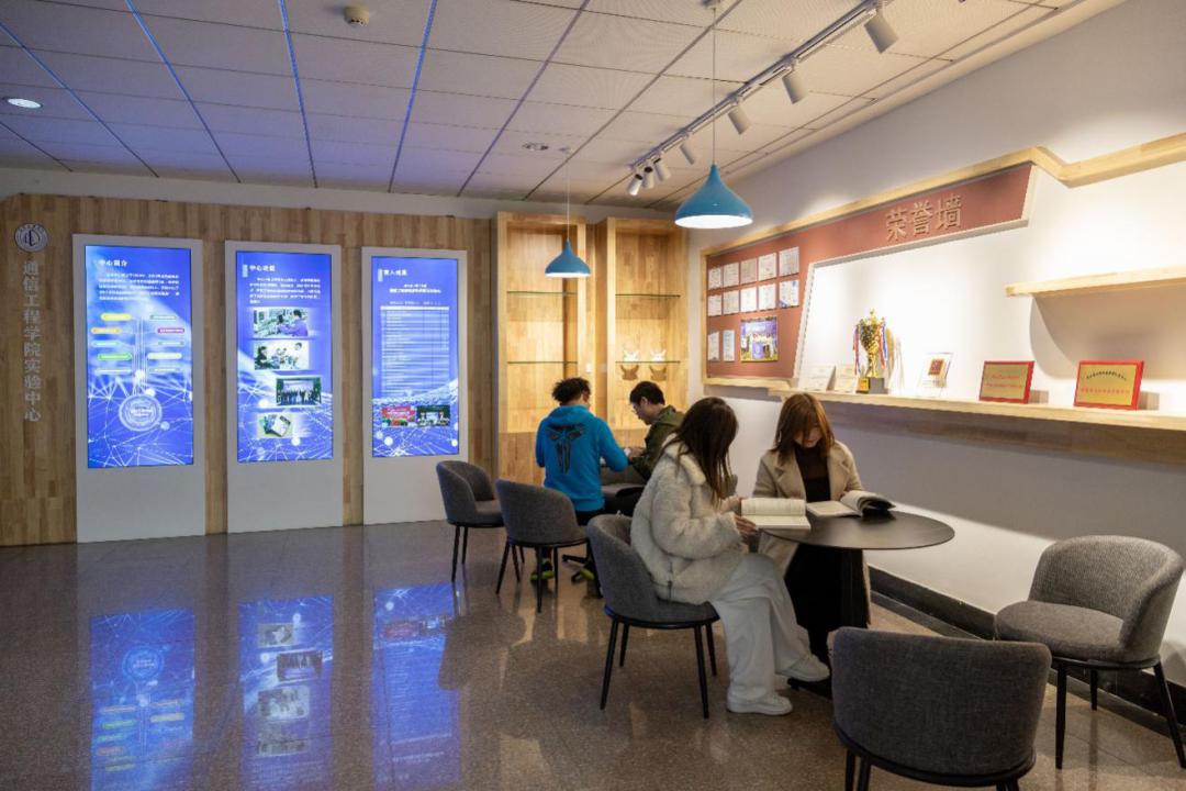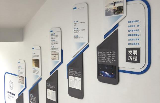 信息科技长廊文化展示区立体动态地展示信息科技与通信学科、通信工程学院的发展史。