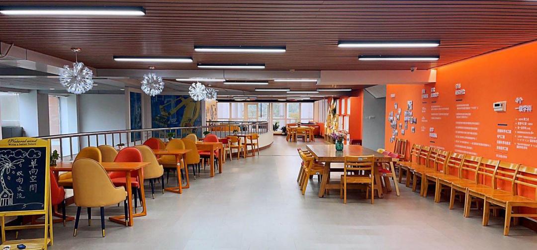 校友空间:墙面设计融合会计学院院史和校友文化元素。家具以橙色可移动的弧形沙发为主,配高脚桌椅,整体风格简洁明快。空间既可用于师生开展学术交流与学习讨论,也是广大师生及社会人士了解会计学院校友历史发展的一扇窗口。来 源 | 党委宣传部 各学院