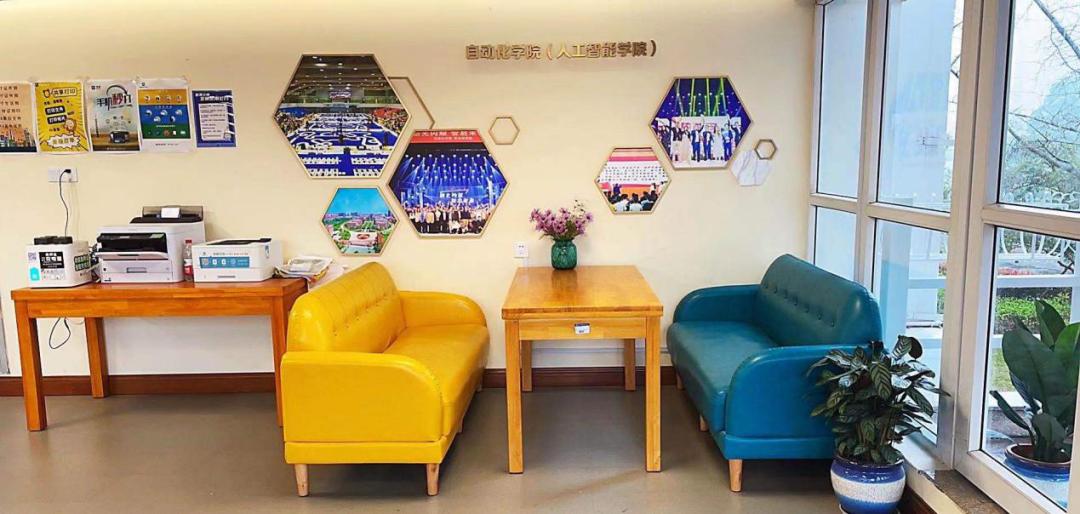 实验育人文化区全方位、多样化展示实验室育人成果,该区域配有沙发桌椅,同时也为来做实验的同学提供一个开放、舒适、宽松的体验环境。