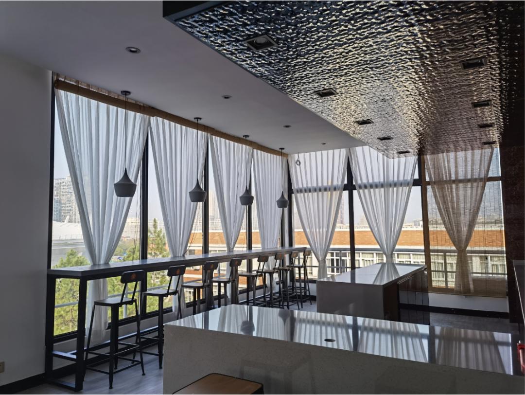 多功能厅(翠英坊)吧台区,提供舒适独立的阅读学习空间,有独立小吊灯。