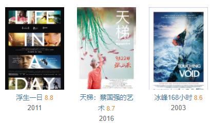 此外,还有《天梯:蔡国强的艺术》《冰峰168小时》等高口碑佳作。