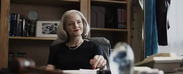 电影中,她饰演的为维护人权而奔波的女律师,白发红唇,优雅至极。