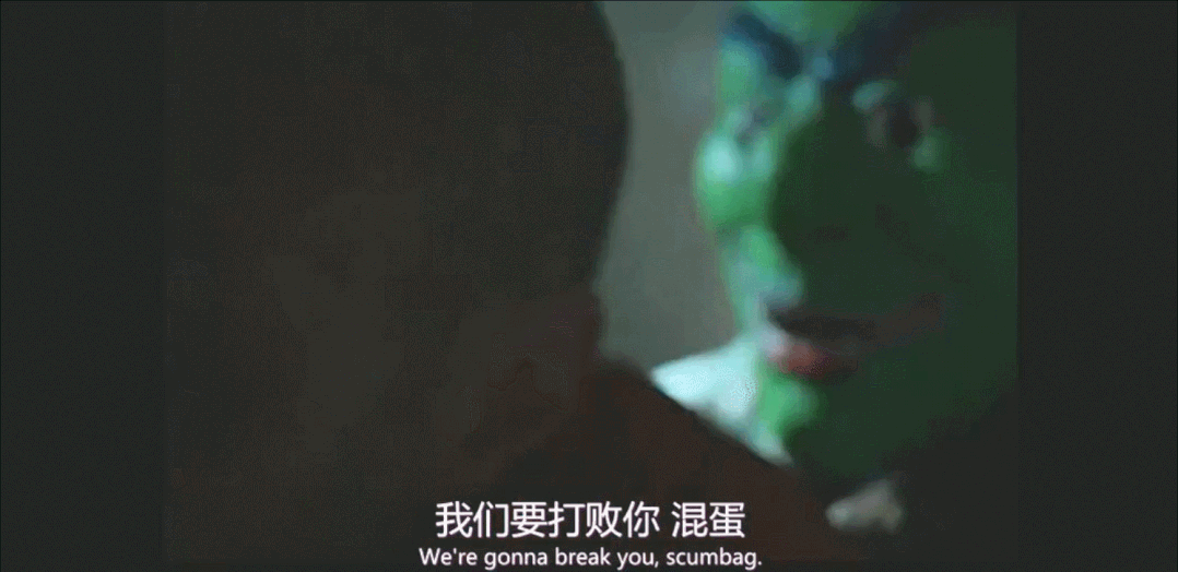 第二项,视觉污染。军方派士兵戴着各种怪兽头套,在昏暗的房间里进行恐吓。