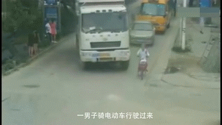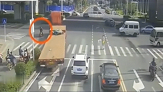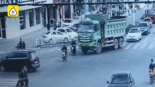 以下是渣土车与车辆、行人发生车祸的瞬间